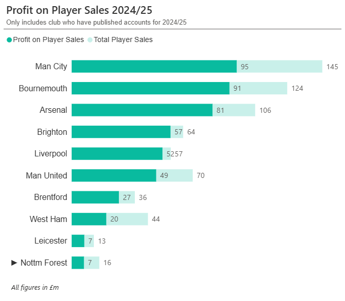Among the ten clubs that have published full financial results to date, Forests profit from player sales is one of the lowest.