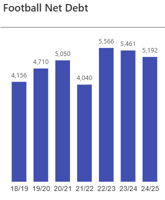 In contrast, related-party loans have declined over the same seven-year period. The most significant reduction occurred in 2021/22, when Roman Abramovich’s £1.4 billion loan to Chelsea was effectively written off as part of the Clearlake/Boehly takeover.